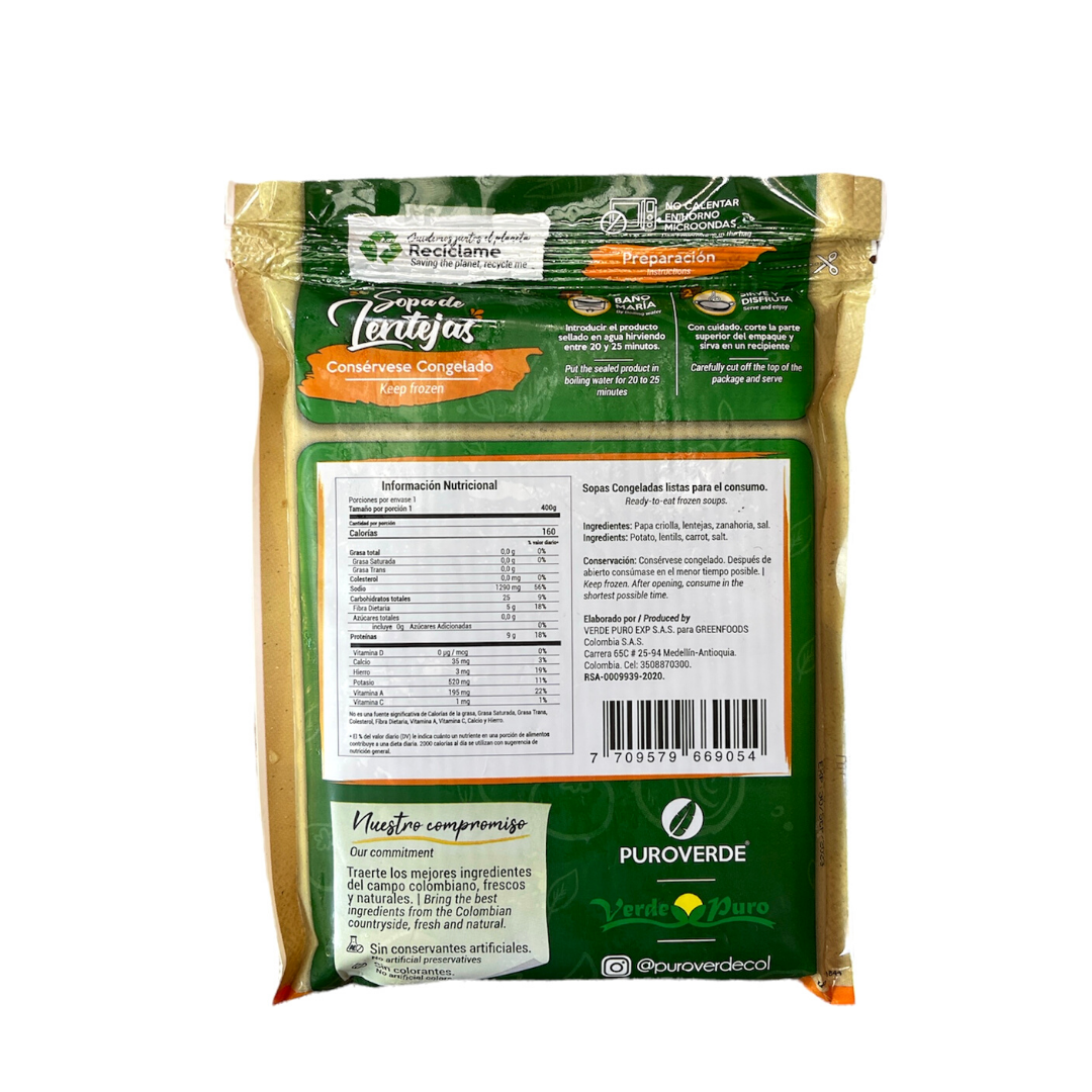 Presentación: Sopa congelada en bolsa para calentar al baño maría por 400gr.